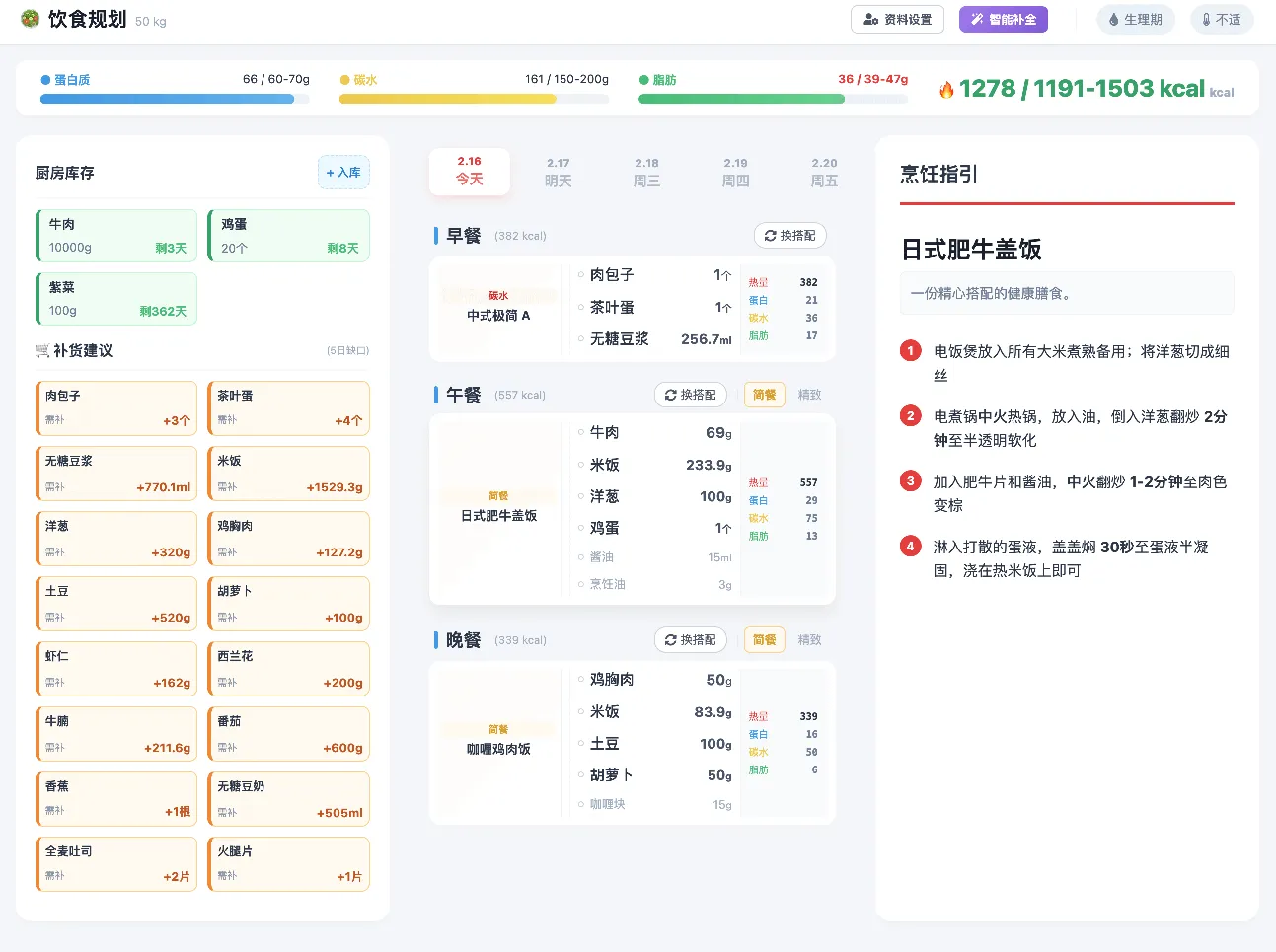 智能饮食规划 - 自动推荐健康菜谱